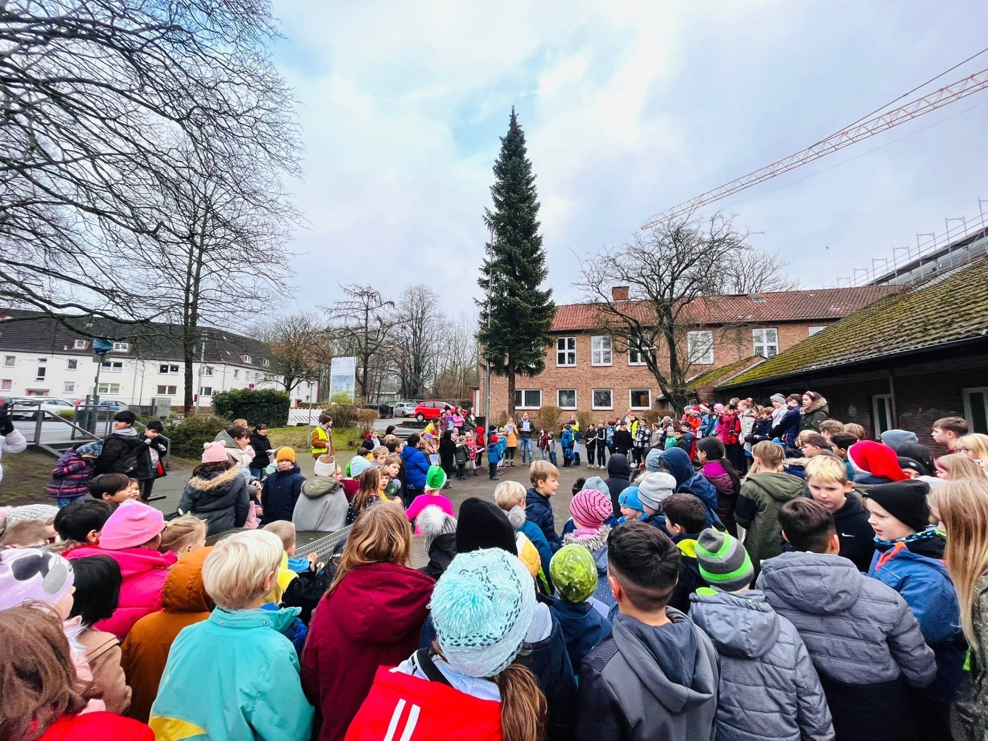 Der letzte Schultag vor den Weihnachtsferien wurde gemütlich im Klassenlehrerunterricht verbracht und endete mit dem traditionellen Weihnachtssingen mit der gesamten Schule. Gemeinsam wurden Weihnachtslieder wie "In der Weihnachtsbäckerei" und "Rudolph" gesungen. Die Schulversammlung wurde auch zum Anlass genommen, insgesamt 40 Kinder für den Adventslauf zu ehren, sowie die erfolgreichen Teilnehmer der Mathematik-Olympiade und die engagierten Streitschlichter der Schule. Schöne Weihnachtsferien!