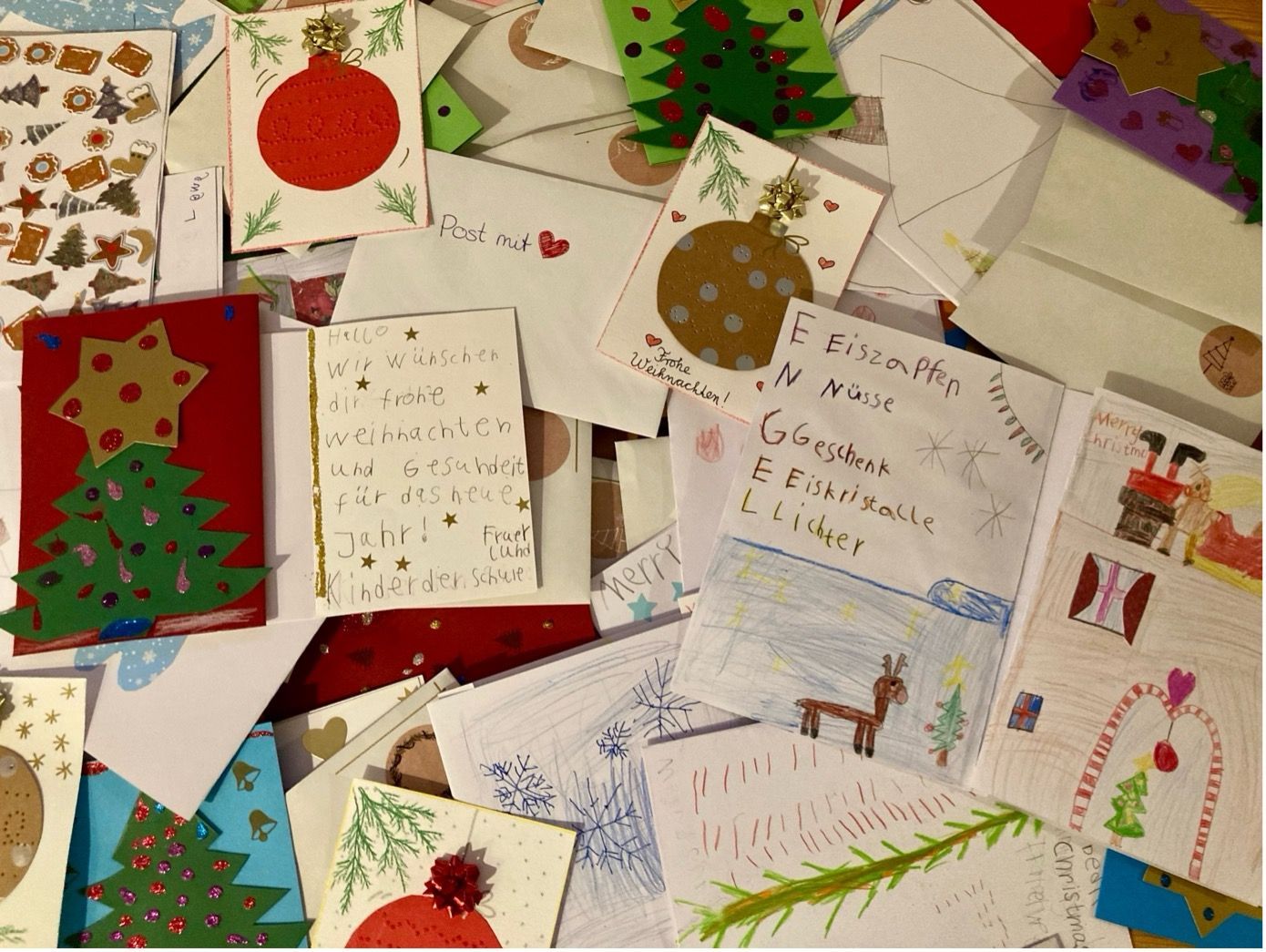 Im Rahmen der Aktion „Post mit Herz“ wurden diese Karten an soziale Einrichtungen verschickt, um dort an Heiligabend Menschen ein Lächeln zu schenken und ein Zeichen gegen Einsamkeit zu setzen. Insgesamt gingen 80 Karten auf die Reise!