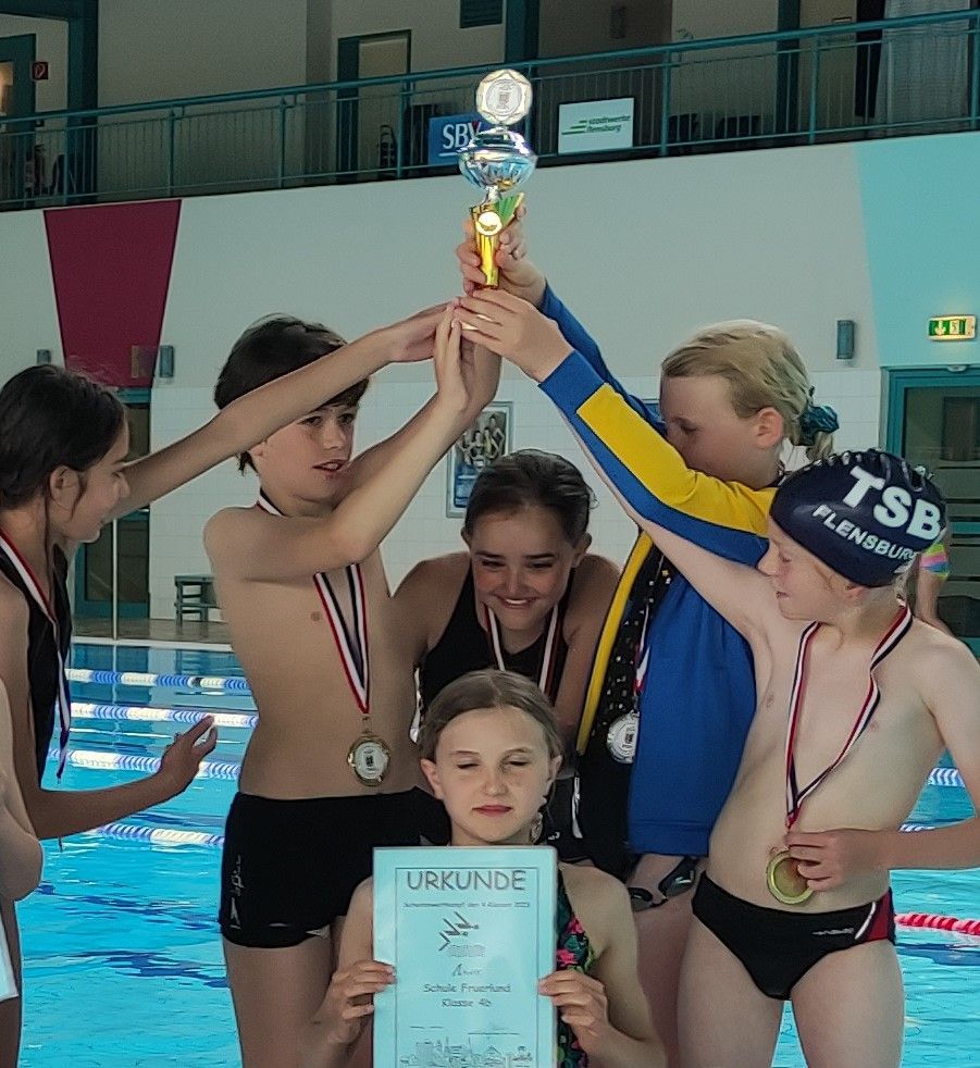 Besonders erfolgreich war aber das Team der 4b: Es holte den Pokal des Stadtmeisters nach Fruerlund und wurde souverän Erster!